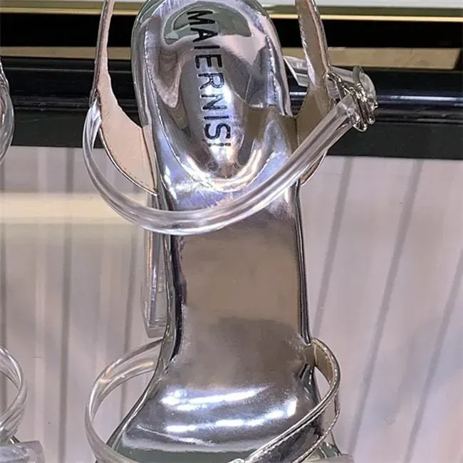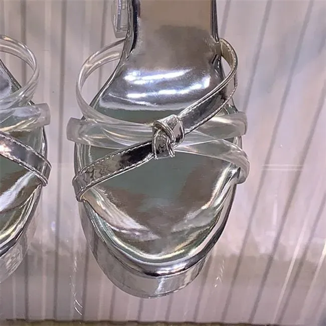 Size:4.5-10 Women Fashion Color Blocking Block Heel Buckle Strap Platform Shoes