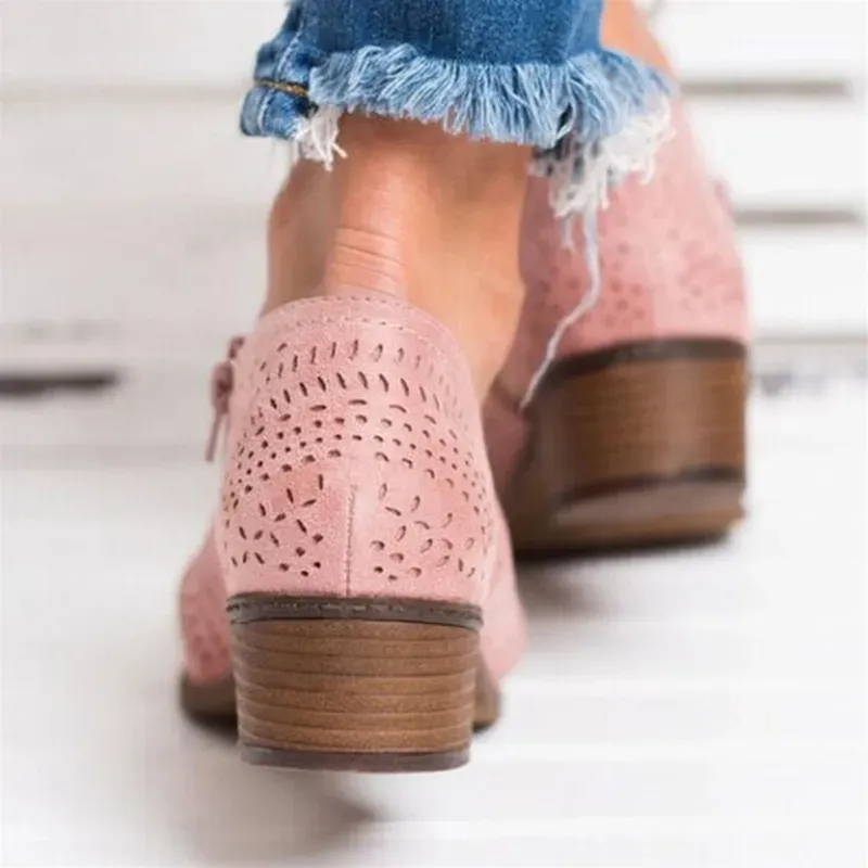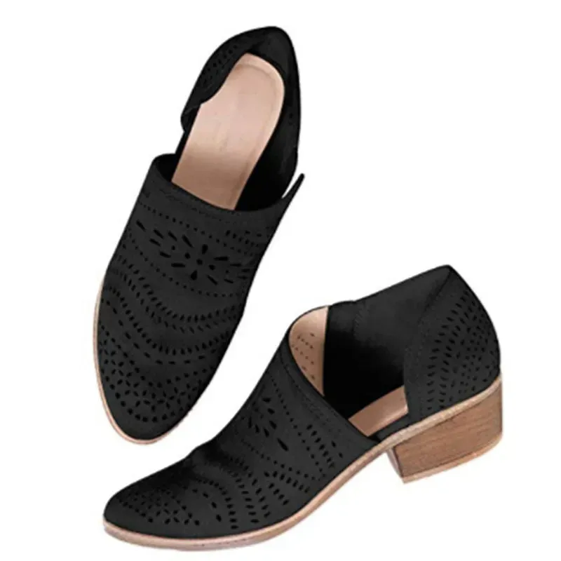 Size:4.5-11 Women Boho Carving Design Low Top Boots Shoes