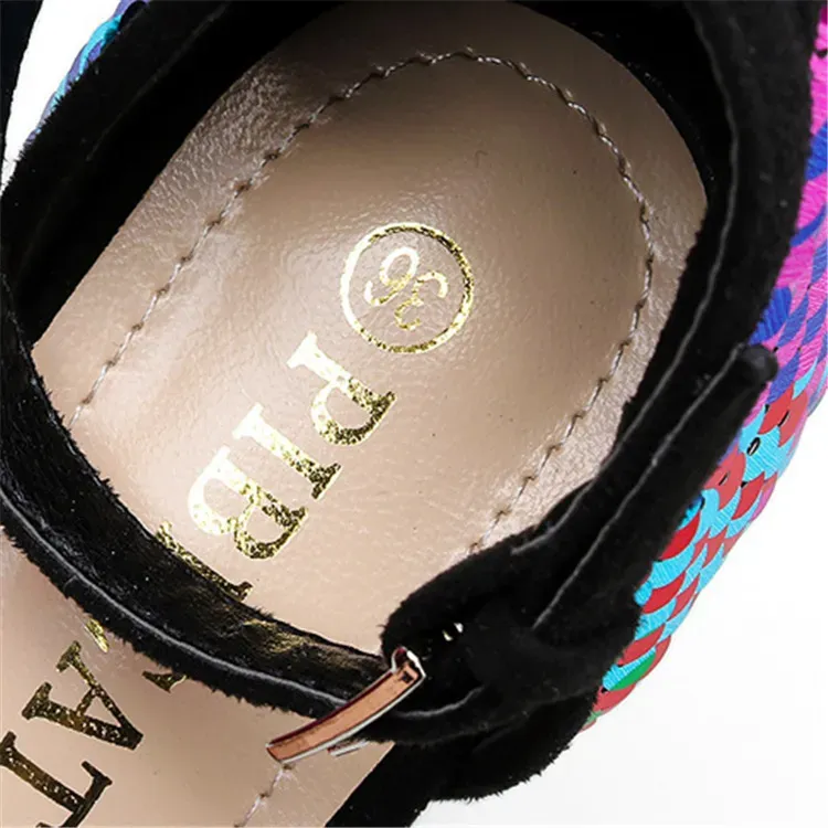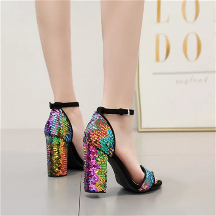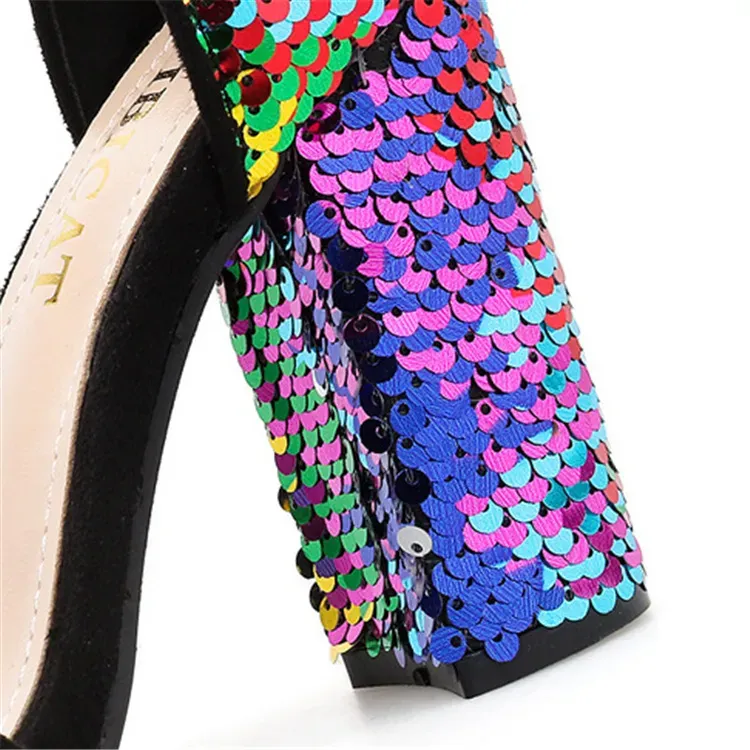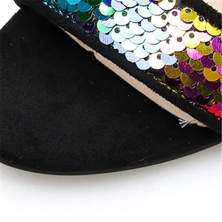 Size:4.5-8.5 Women Fashion Multicolor Sequins Decorative High Heel Sandals