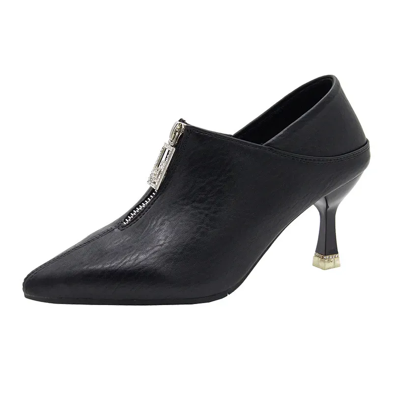 Women Stiletto Front Zipper Decor Solid Color Pu Pointed Toe Short Boots